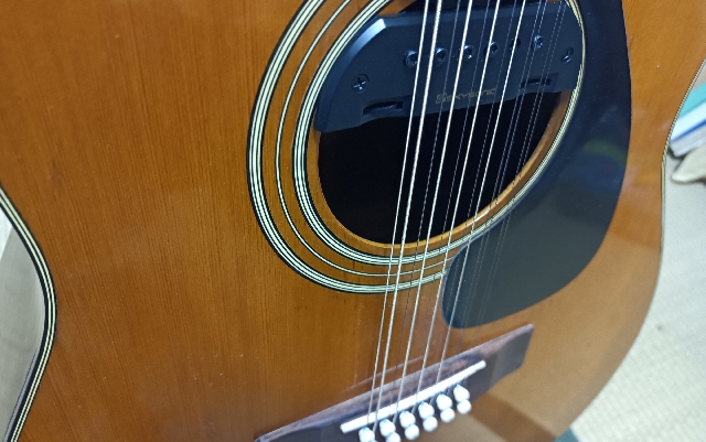 GUILDにピックアップ装着したらアンプを通した音は最高だけれど生音がイマイチだね!ピックアップがサウンドホールを塞ぐからだね・・それにちょっとピックアップが重いね・・・