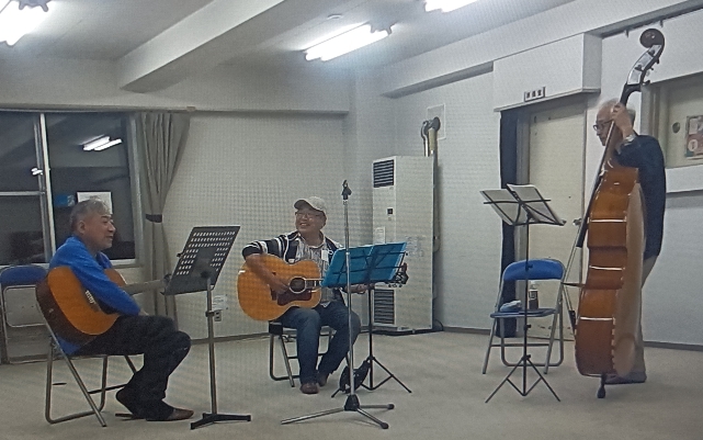 松園公民館を借りて練習日です。ベースとボーカルを向かえてメンバー初の顔合わせ・・・