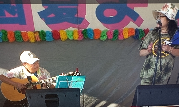 今日は松園夏祭りにお呼ばれ・・・猛暑日の中、汗ダラダラで、指は滑るはもう大変!5曲も弾いちゃった。